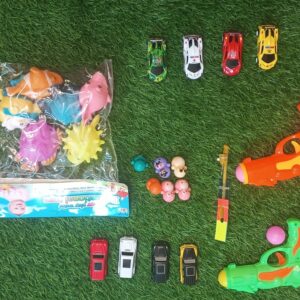 Kids Fun Toy Bundle – Bath Toys, Mini Cars, Two Guns & Fishing Game Set