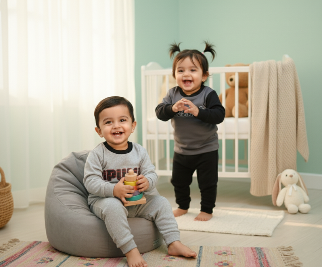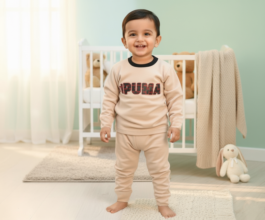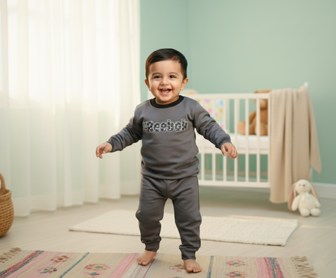Soft and cozy fleece tracksuit for boys aged 1–3 years. Perfect winter wear to keep your little one warm, comfy, and stylish — only at Kam Qeemat!