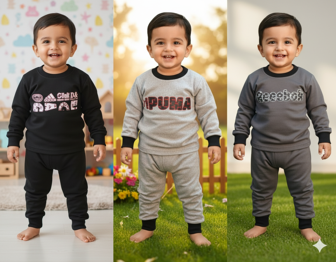 Keep your little champ warm and stylish this winter with our Kids Fleece Tracksuit for Boys, specially designed for ages 1 to 3 years. Made from soft, breathable, and high-quality fleece fabric, this tracksuit provides excellent warmth and all-day comfort.