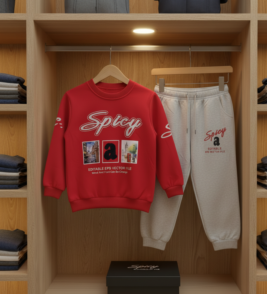Kya aap apne bacche ko stylish aur pocket-friendly fashion dena chahte hain? Hamari ‘Kam Qeemat’ collection pesh karti hai yeh behtareen track suit jiska modern design aur unique Red/Blue (Teal) shade sabko pasand aaega.