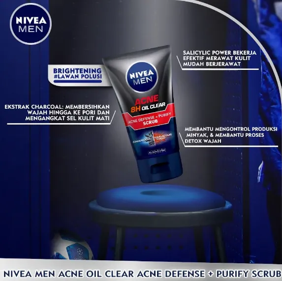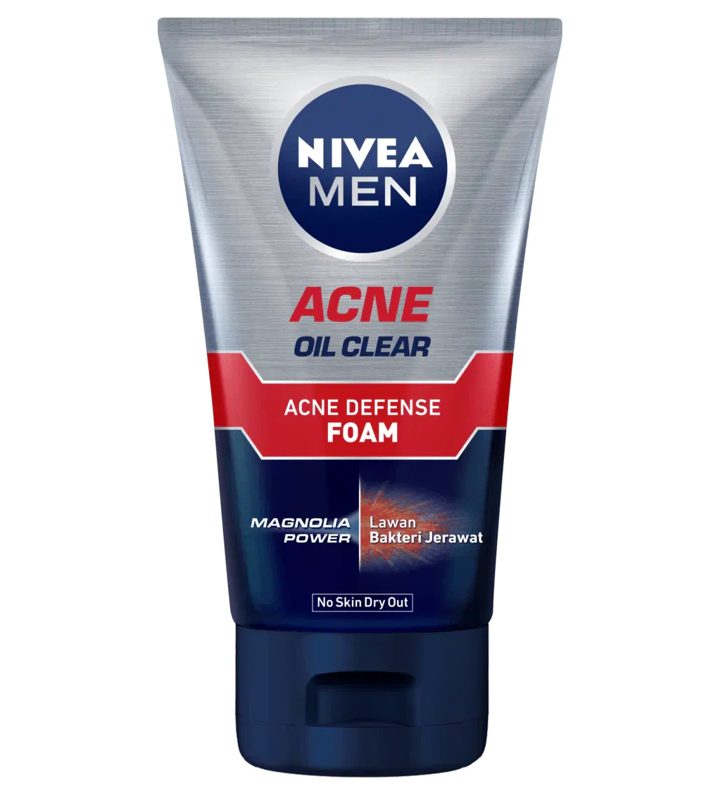 NIVEA MEN Acne Oil Clear Acne Defense Foam is specially designed for men’s skin prone to oil and acne. Powered with Magnolia Extract, it effectively fights acne-causing bacteria while controlling excess oil. The gentle formula deeply cleanses pores without drying the skin, leaving it refreshed, clear, and healthy-looking.